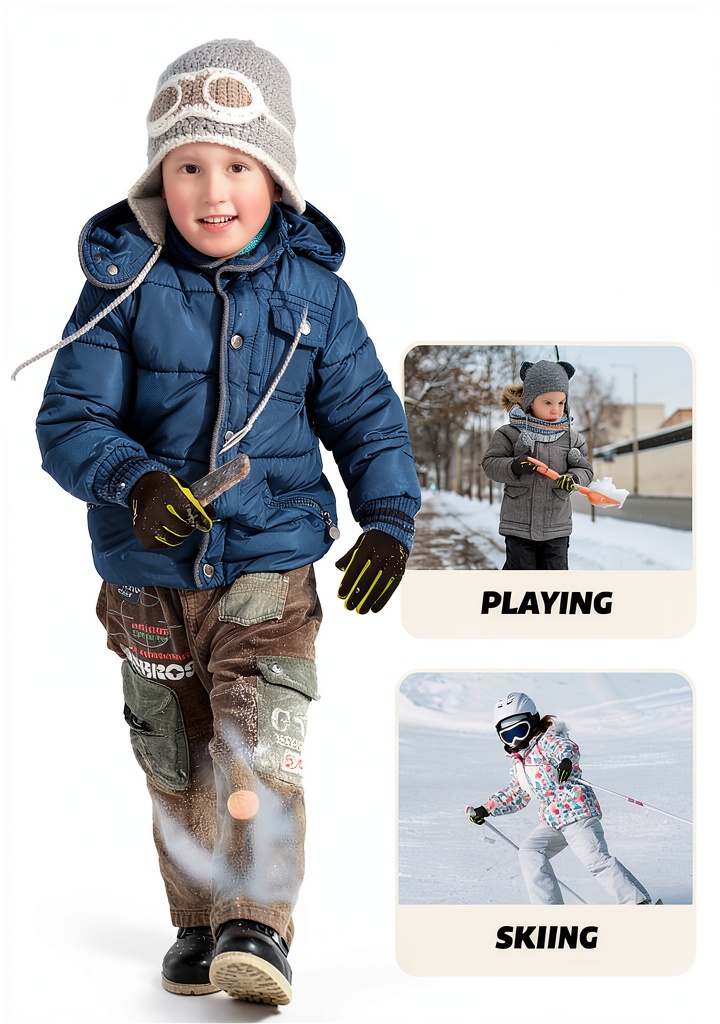 These gloves are perfect for children aged 4-12 engaging in outdoor activities such as running, cycling, hiking, and walking to school in cold climates. The windproof design and elastic cuffs provide a snug fit, preventing the gloves from slipping off during vigorous movement. Indoors, the touchscreen capability allows kids to operate devices comfortably, making them versatile for both play and daily use. Ideal for boys and girls who need reliable hand protection and functionality in winter conditions.