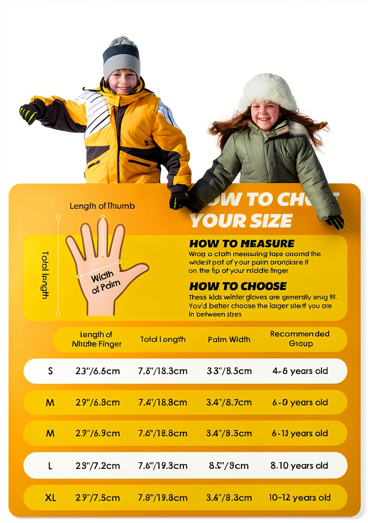 Measure your child’s hand circumference and refer to the size chart provided. The gloves are designed to fit snugly but comfortably, with elastic cuffs for a secure feel.