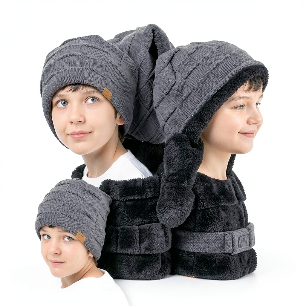Designed for children aged 4 to 15 years, these Kids Winter Beanie Hats feature a smart double-layer construction with a durable knitted outer shell and an ultra-soft fleece inner lining. The classic solid-color plaid patterns and reinforced 3D stitching ensure a timeless look that maintains its shape through repeated machine washing. With a stretchy rib-knit design fitting head sizes from 19.29″ to 22.04″, these beanies provide exceptional warmth without irritation, making them ideal for harsh winter conditions. Available in a practical 3-pack including black, gray, and blue options, they offer versatile styling and reliable performance for everyday wear.
