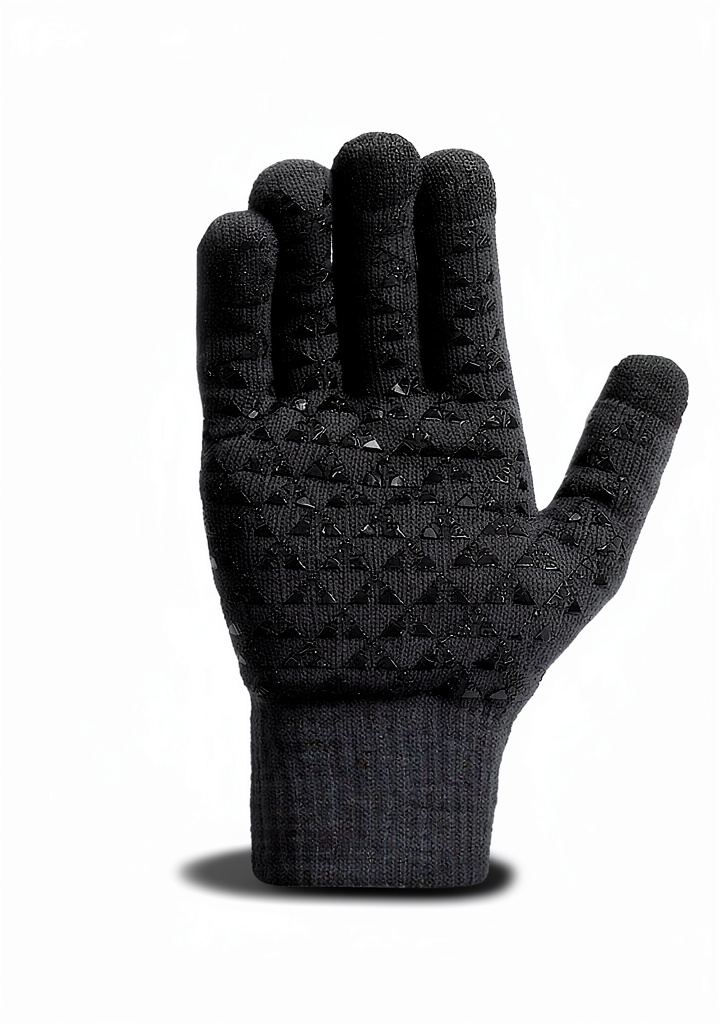 - Touchscreen-compatible gloves with silicone palm grips for safe device use and play
