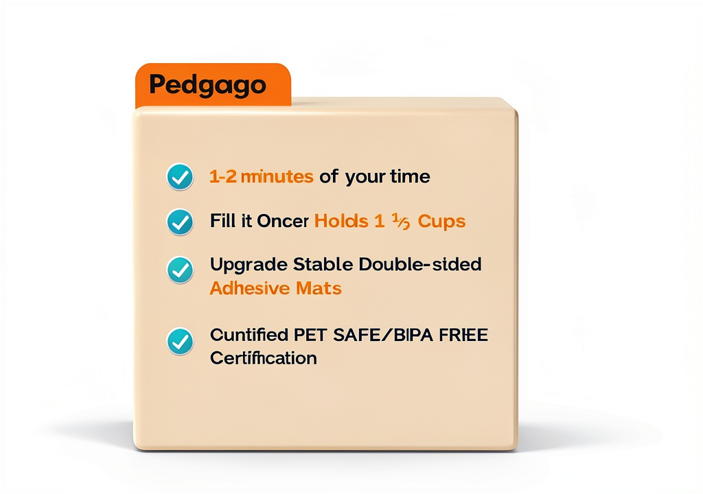 Pedgogo stands out with a commitment to quality and customer satisfaction, offering a lifetime support promise for any inquiries or issues. The slow feeder’s slip-proof design, enhanced by optional double-sided adhesive mats, provides 10 times more stability than standard rubber mats, preventing spills and frustration. Made from indestructible, food-grade materials, it withstands rigorous play while being easy to clean—just rinse and air dry. This focus on durability, safety, and user-friendly features ensures a reliable product that supports your dog’s well-being without the hassle.