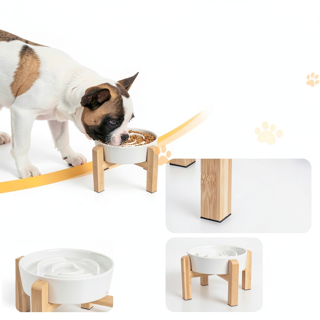 This ceramic slow feeder bowl from PTOBER helps dogs eat at a healthier pace, reducing risks of choking and bloating. Its elevated stand with anti-slip stickers provides comfortable feeding height and stability. Made from food-grade ceramic and bamboo, it’s safe, durable, and easy to clean for daily use.